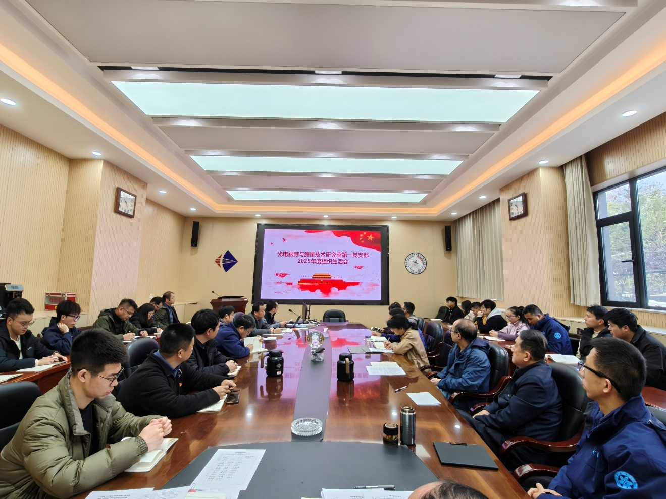 2026年3月24日,光電跟蹤與測量技術研究室第一黨支部召開2025年度的黨支部組織生活會,主管黨委委員、紀委書記梁峻、黨建工作處王智文列席指導,黨支部書記謝友金主持會議。